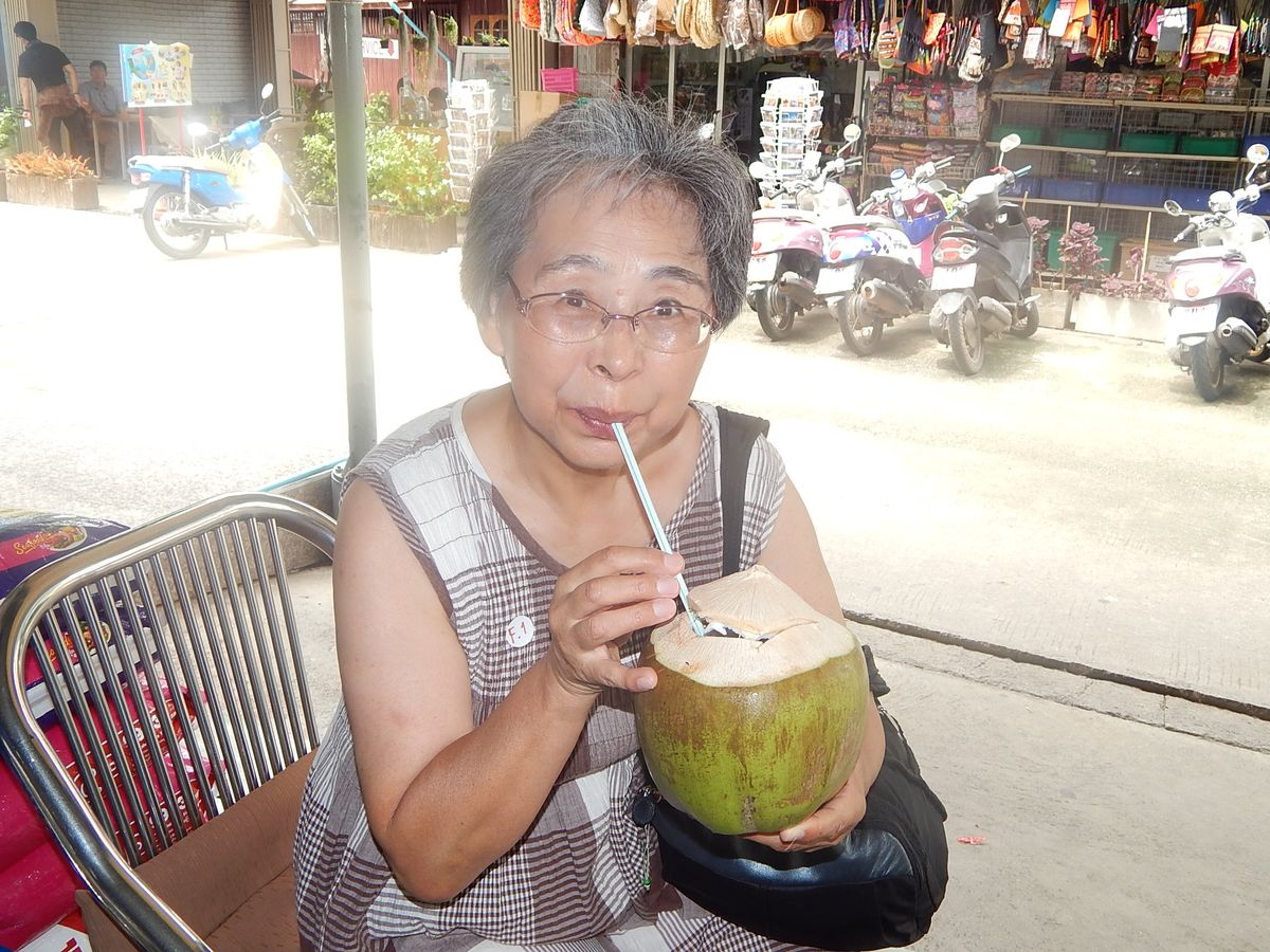 ココナツファームに寄る。ココナツから砂糖ができるとは。試食してみると自然な甘さで美味しい。グツグツと鍋で煮て、乾燥させるまでの工程を見学。初体験はいつも驚きと感動を得られる。そのあと水上マーケットヘ。猥雑さにアジアを感じる。椰子のジュースが30Bと格安。日本ではとても味わえない。冷蔵庫で冷やしてあったので美味しかった。その後に昼食として食べたチューハンがこれまた美味。タイの国が大好きになってしまった。ガイドが連れてくれた美味しいというおばちゃんの店のマンゴージュースが絶品でした。