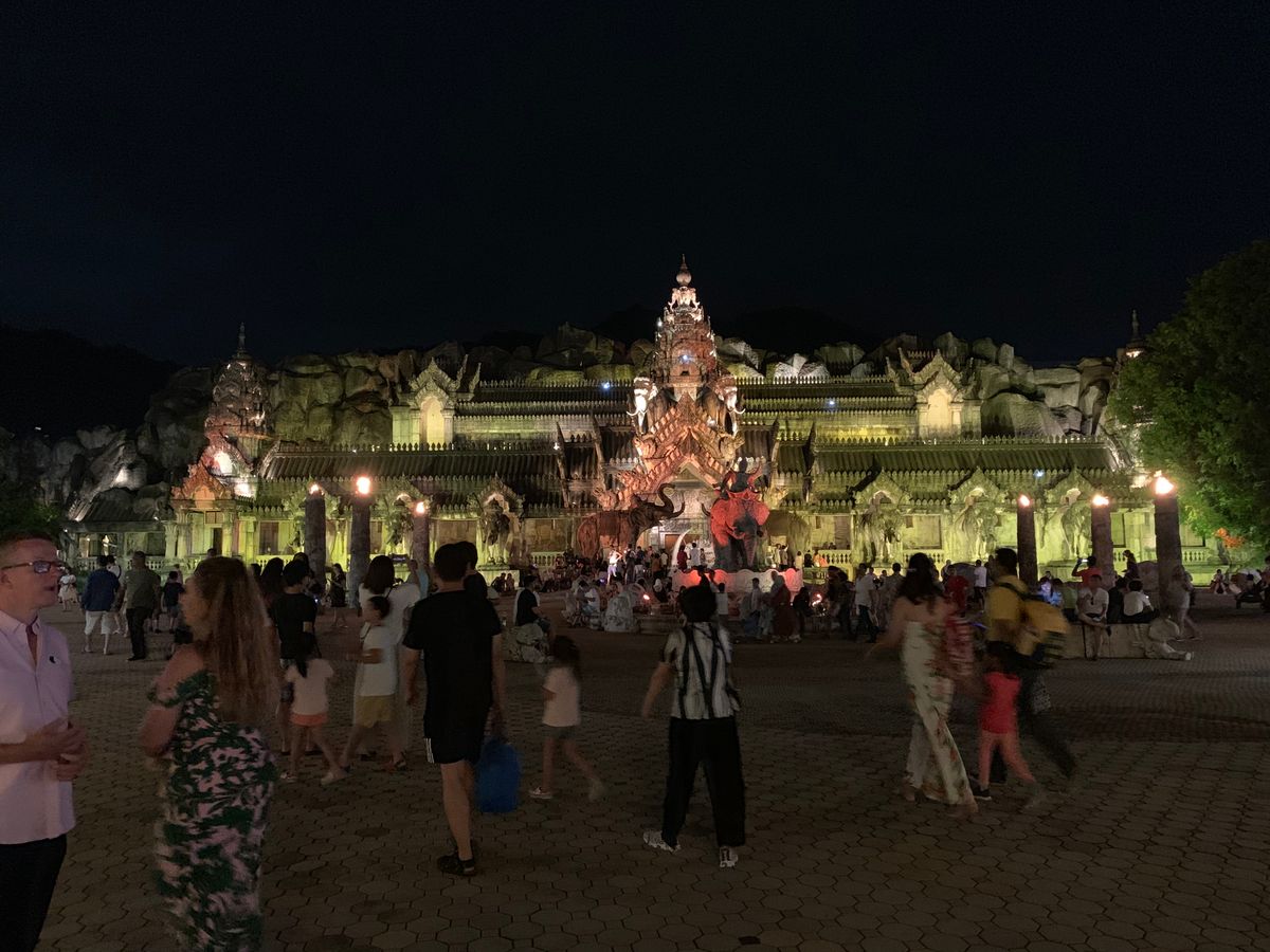 ショーが始まるまでの時間も、オプションで「像と記念撮影」「トラと記念撮影」をしたり、広すぎる宴会場みたいなところでブュッフェディナーを食べたり、子供が楽しむゲーム有料ですが…があったりお金がかかりますが、楽しめます‼️