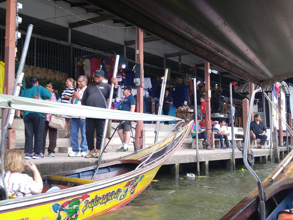 水上マーケットでは雨もあがりましたが、水かさも増していたのでスピードボードはとても楽しかったです。次に手漕ぎボートに乗りかえました。乗らないとただの市場観光になってしまうのでお奨めします。マーケットは観光客相手なので超高い値段を言ってきますが、交渉を続けて納得いかずNO Thank Youと言えば渋々半額以下まで下げられました。