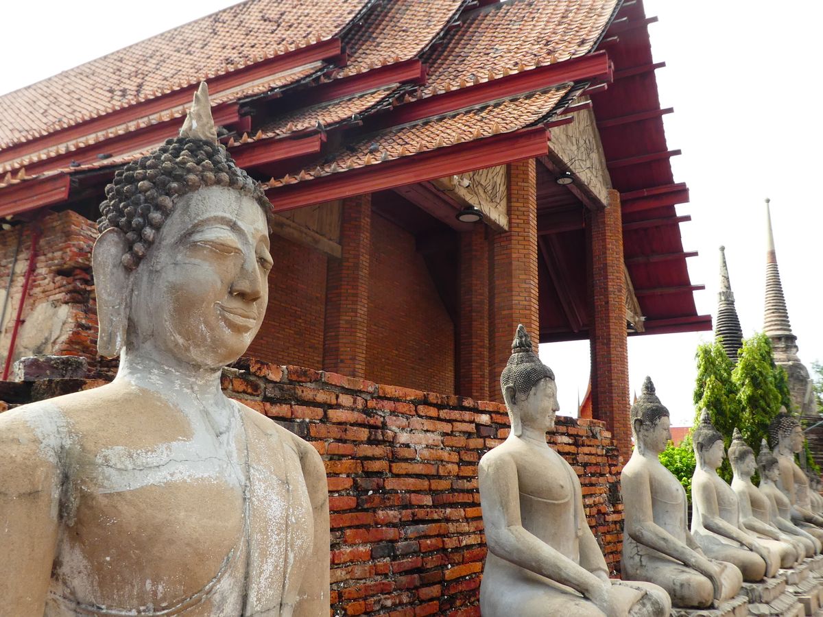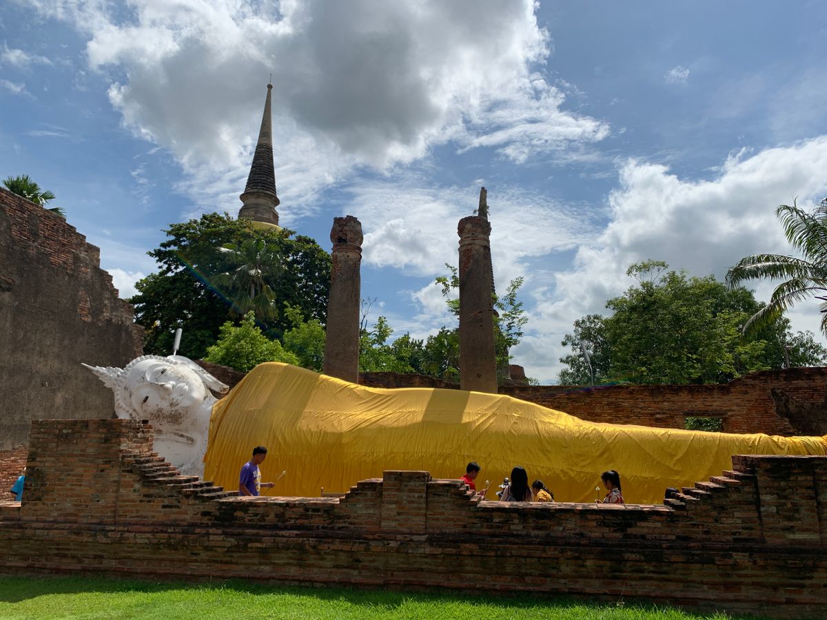 アユタヤ遺跡は各名所が離れていることもあり自力で行くのは大変だなと思いツアーを申し込みました。バス移動で色々回り、休憩も兼ねてバスで涼むことも出来るのでとてもお勧めです!チケット売り場も長い列が出来ていましたがツアーの私達はすんなり入ることが出来、時間も有効に使えたと思います。