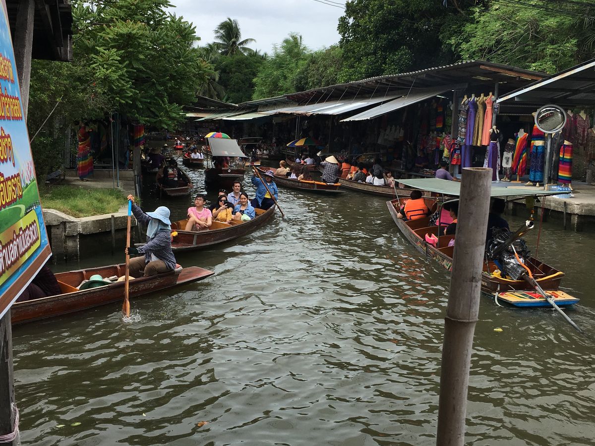 母と2人で参加しました。他の参加者の方がおらず、運良くプライペートツアーのように回れました。水上マーケットそのものは、いかにも観光地という雰囲気があるのは否めません。しかしそれでもいろいろ見所はありますし、自分なりの観点を持って行って、同行者と話しながらだと大変楽しめると思います。タイ滞在が短いと、水上マーケットで焦ってお土産ものを買おうとしてしまうかもしれませんが、特にお金は使わずにのんびり雰囲気を味わうのもおすすめです。