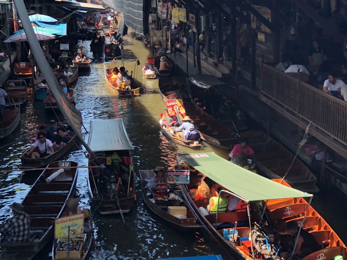 また、メークロン市場や水上マーケットは、アクセスやボートレンタルの交渉等、個人で行くのは中々ハードルが高いと思うので、旅慣れしていないわたしはツアーでないと行けなかったなと感じます。水上マーケットでは、見学後にオマケで民家の並ぶ水路も通ることができ、現地の方の生活を感じられてとてもよかったです。