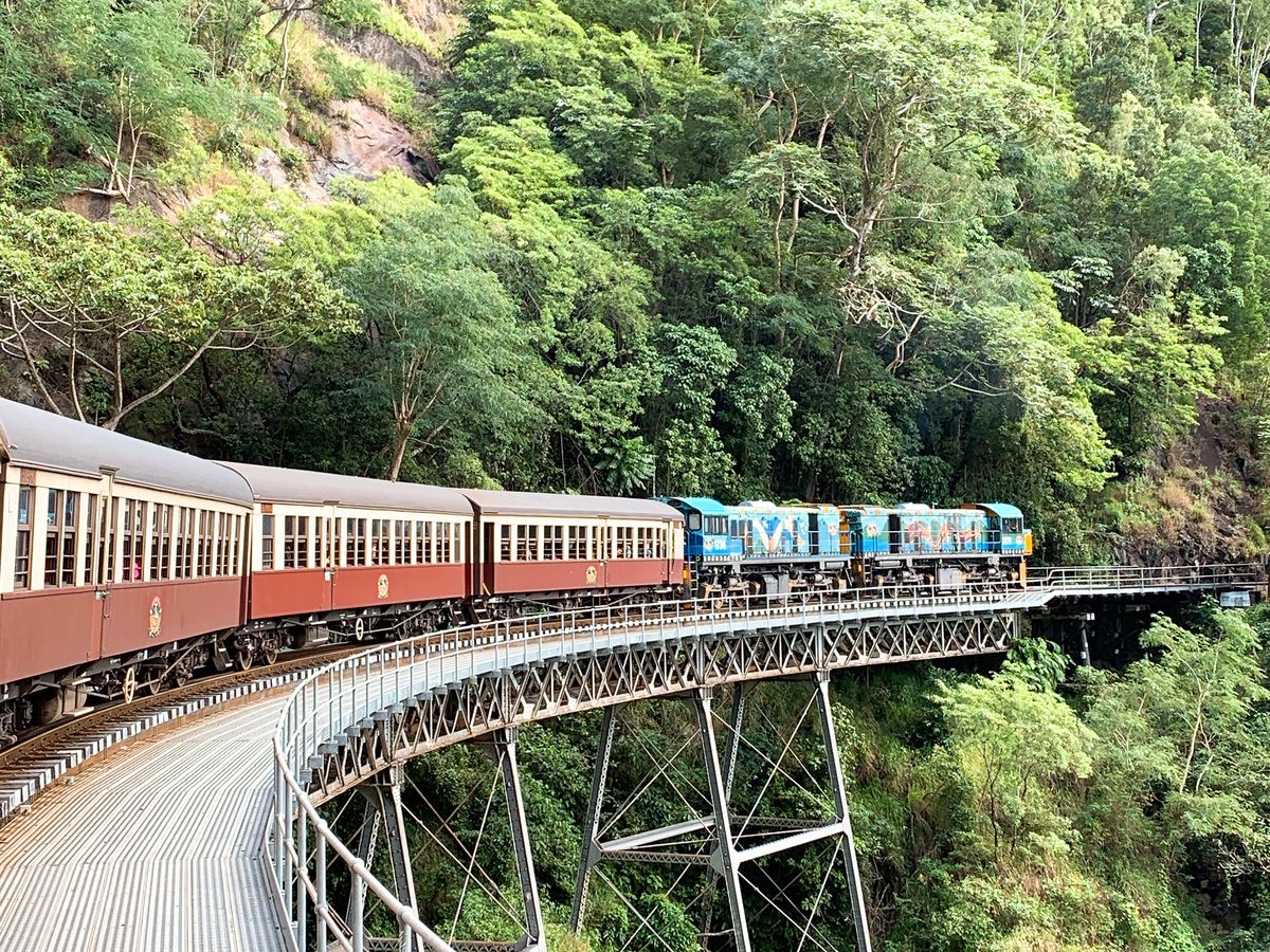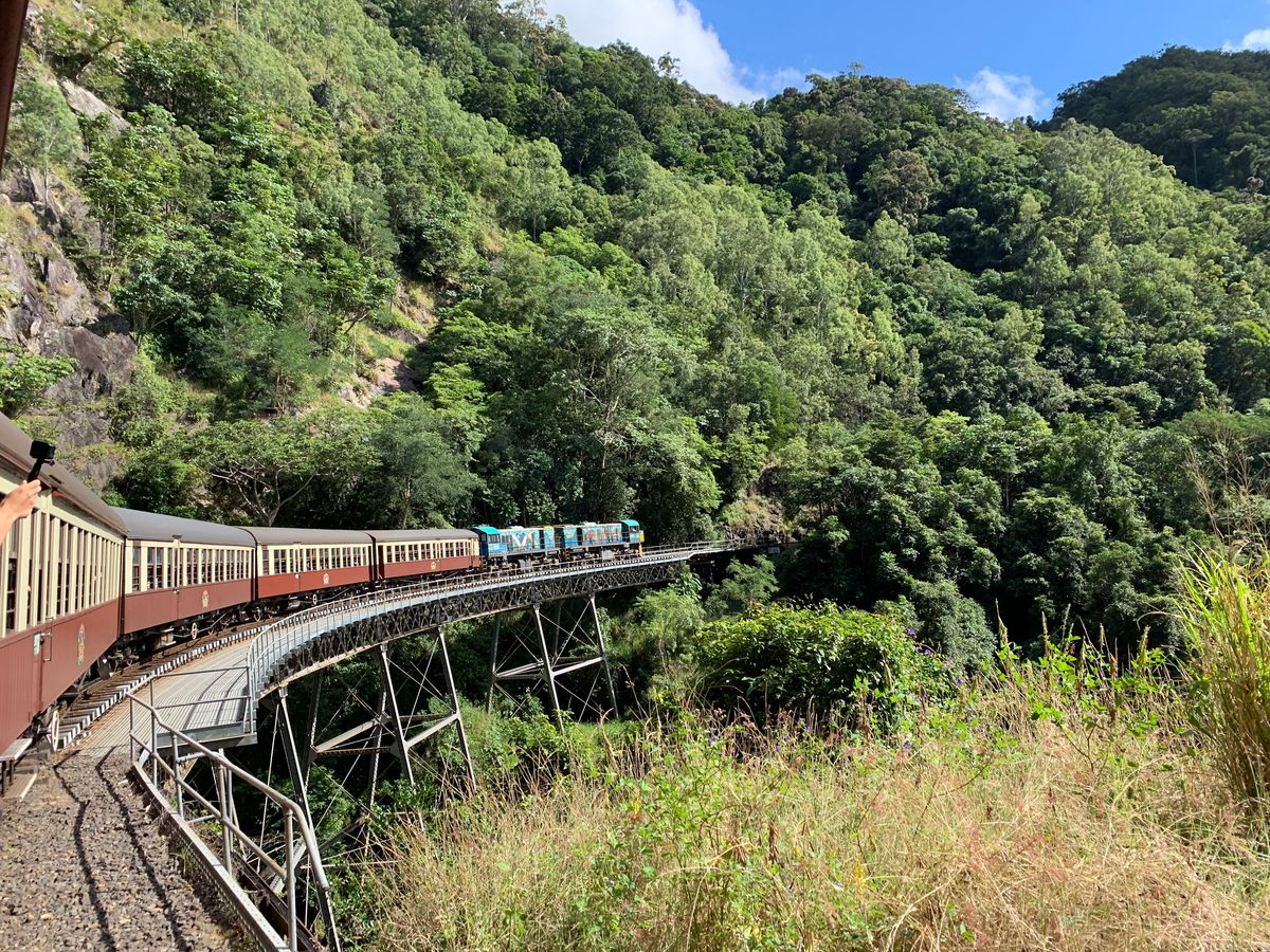 列車の時はとても晴れていて最高の景色が見れて幸せでした!スカイレールになった時は雨が降ってしまってそれもまた、いい思い出です^_^とても楽しくてゆったりできたツアーでした‼️キュランダコーヒーも飲むことができ、美味しかったです。