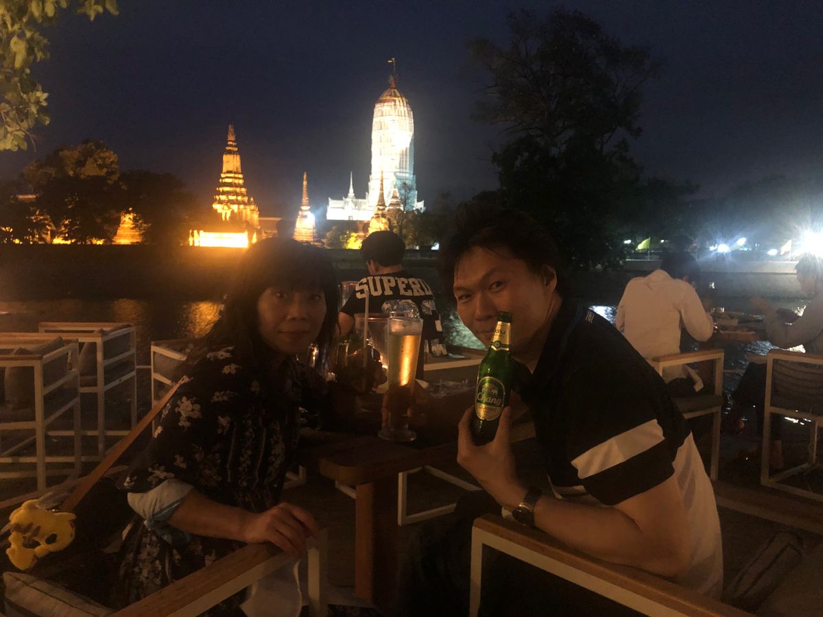 夜景を見ながらお食事できる有名店サラアユタヤでは川の目の前に広がる美しい遺跡とおいしいコース料理をいただき大変楽しく幸せな気持ちで1日を過ごせました。