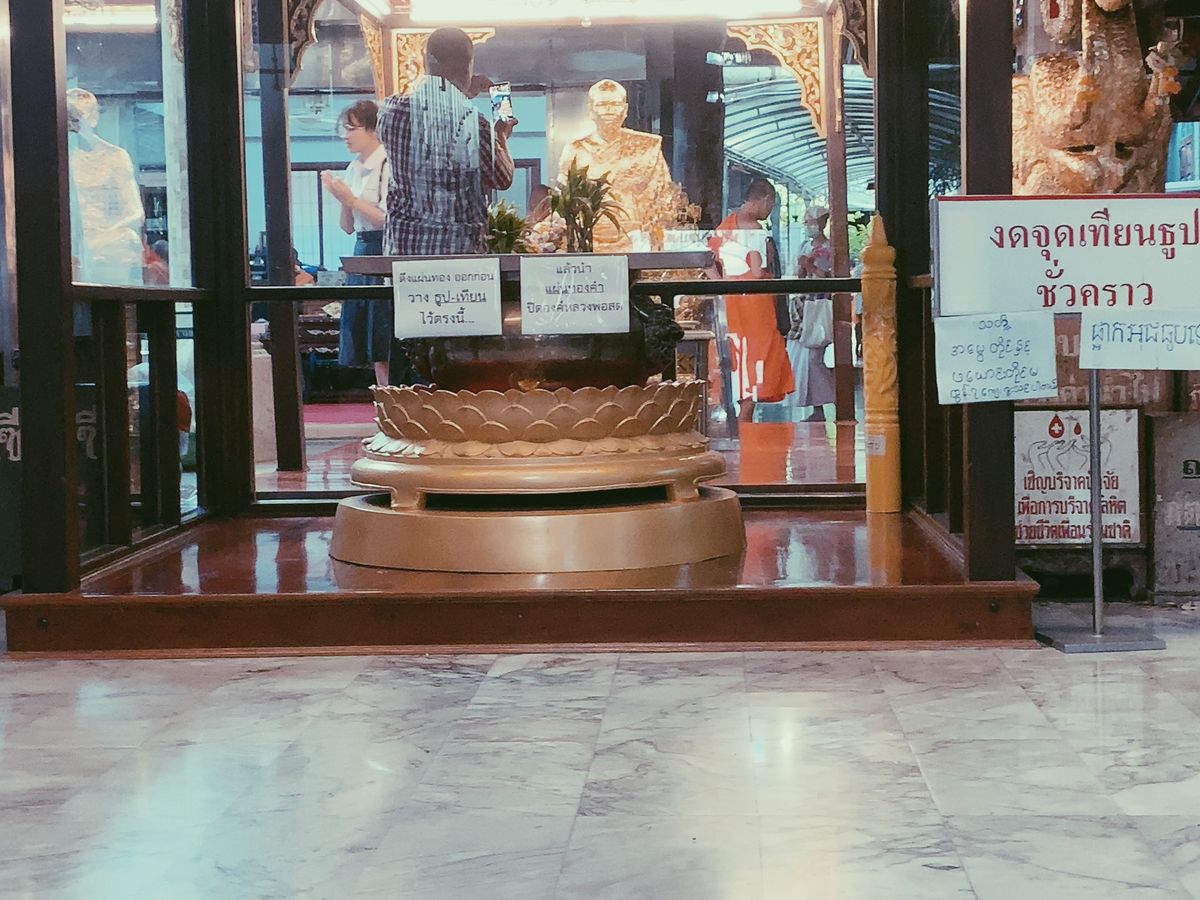ワットパクナムの礼拝堂に連れて行ってもらい、お祈りや金箔のお供えをさせてもらったのは貴重な体験でした。