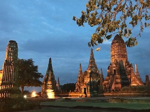 他の方も書いているように遺跡一つずつの滞在時間は短いのですが、タイの歴史や遺跡に全くと言っていいほど知識のない私達には、ガイドさんの説明とそれくらいの時間で十分でした。(実際、暑いので助かりました)ガイドさんは質問には丁寧に答えてくれますし、日本との違いなども説明してくれて良く勉強されているなと感心しました。写真もベストポジションで撮ってくれます。アユタヤでしか食べられないというクレープのようなお菓子もとても美味しかったです。夕食をいただいたSALAというレストランでも、大変美味しいタイ料理が出ました。ビールを飲んで(別料金)1時間余り、のどかな景色を眺めながら楽しみました。最後にライトアップされた遺跡に戻り15分程だったでしょうか、夕暮れから段々暗くなり浮き上がってくる遺跡を眺めました。素晴らしい眺めで大変満足しました。