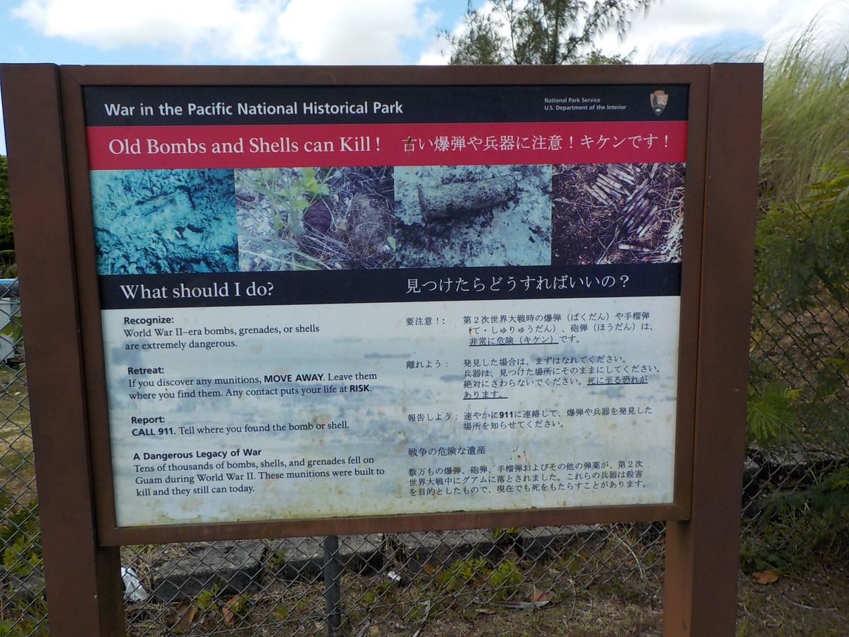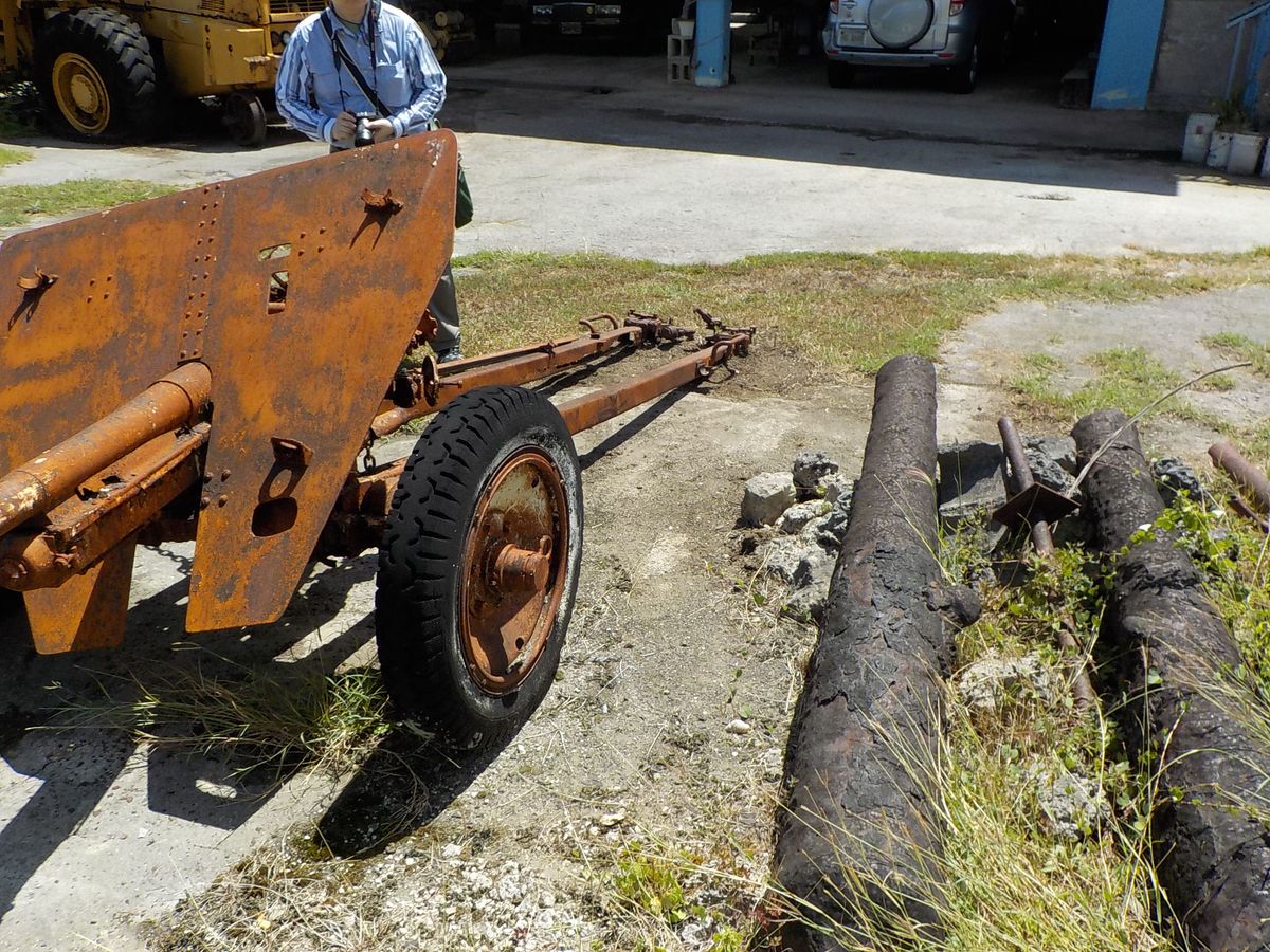 特に印象に残っているのは、スクラップ屋さんの前に置いてあった山砲。横浜タイヤ製のタイヤがあまり痛んでいなくて今でも使えそうなことです。また、昼食場所から見た風景の中に横井さんが潜伏した(発見された?)場所があったこと、マイクロネシアモールがあった場所も戦場だったことも。