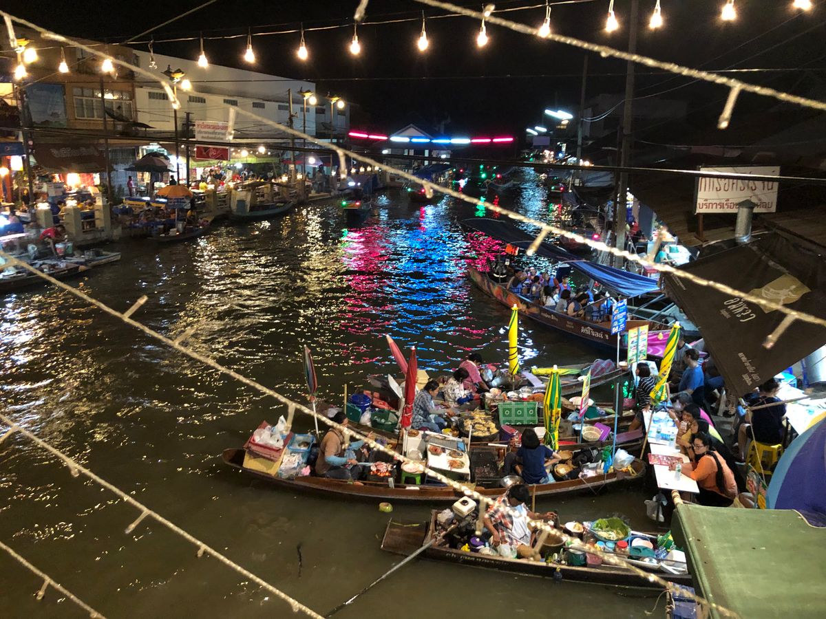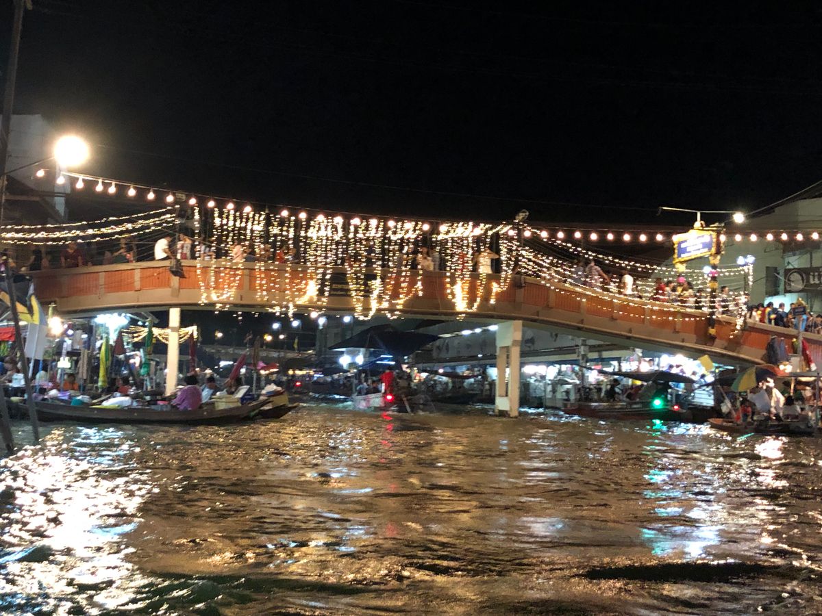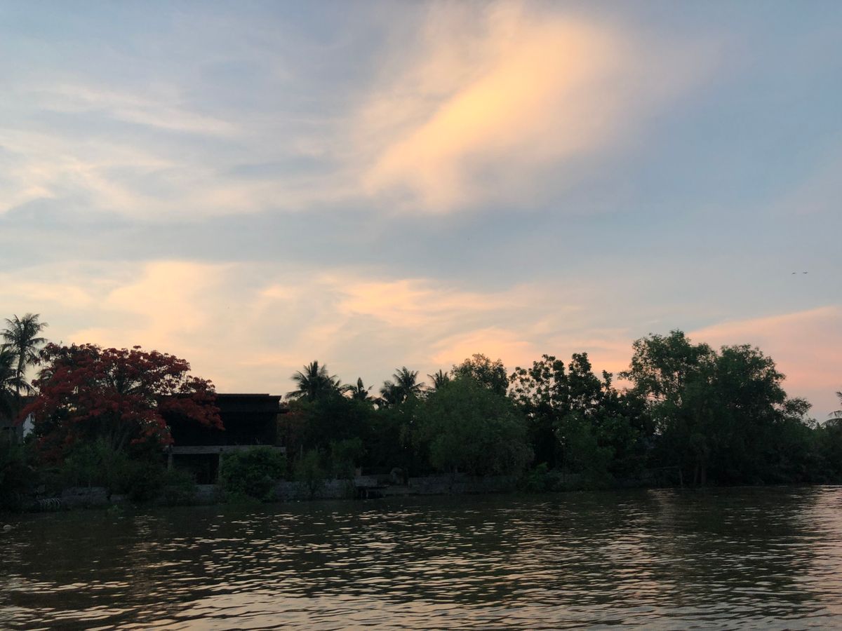 水上マーケットは、夕方に到着するので、昼・夕暮れ・夜の景色が楽しめました。船に乗ったのが夕暮れ時だったので、空がとっても美しく、表情がどんどん変わっていく様子が素晴らしかったです!