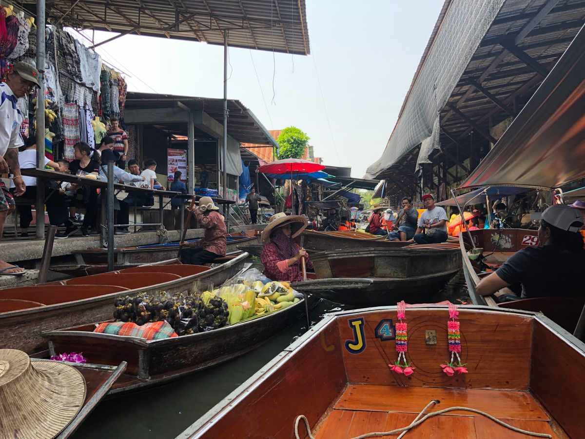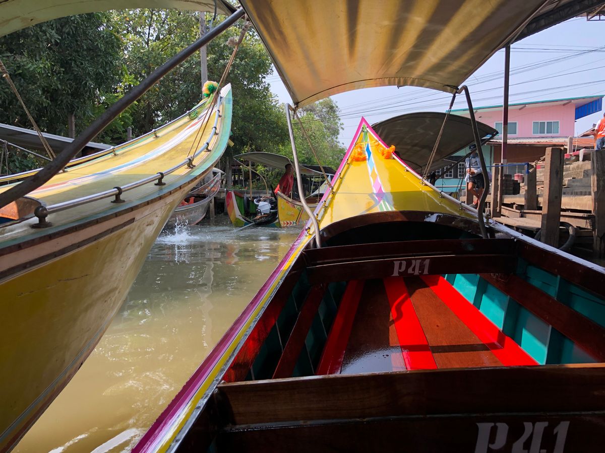 水上マーケットは、4人で行けば1つの手漕ぎボートに、2人でしたので他の方4名と同じでした。(定員は6名?) 席は、早く行ったら前の1人席に座れるので素早く行動するのをオススメします。笑