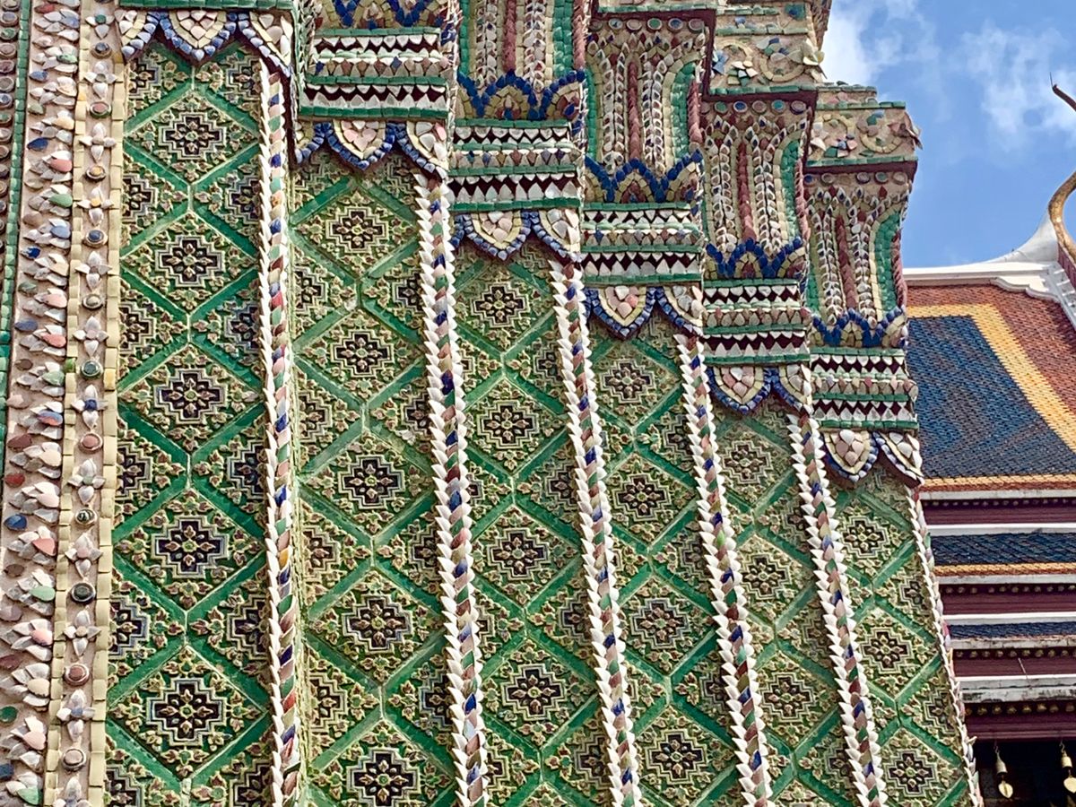 バンコック最終日に時間が出来たので、前日に申し込んで参加させていただきました。朝の6時半に モール前で集合、バスが迎えに来てくれて、違うホテルへ。いろいろなツアーの方がそこへ集められ、そこから それぞれのツアー毎に、出発です。今回の旅行で、毎日オプショナルツアーに参加していましたが、朝早くのツアーで、ホテル迄迎えが無かったのは初めてで、私の場合は、モールがホテルの隣だったので、ラッキーでしたが、他の方は 10分歩いて来たとか。更に、集められたホテルで、長い間待たされました。ガイドさんは 年配の方で、歩くペースが 遅すぎて イライラ。特に、ワットポーから 王宮の入り口までの距離を 暑い中 ガイドさんの歩調に合わせて歩かなければならなかったのには、かなり苛立ちました。自分で回るより ツアーに入って回った方が 早くってスムーズかと思っての参加でしたが、果たして どうやら。全てのスポットは 素晴らしいものです。2度目の訪問であるにも関わらず、沢山 写真を撮りました。
