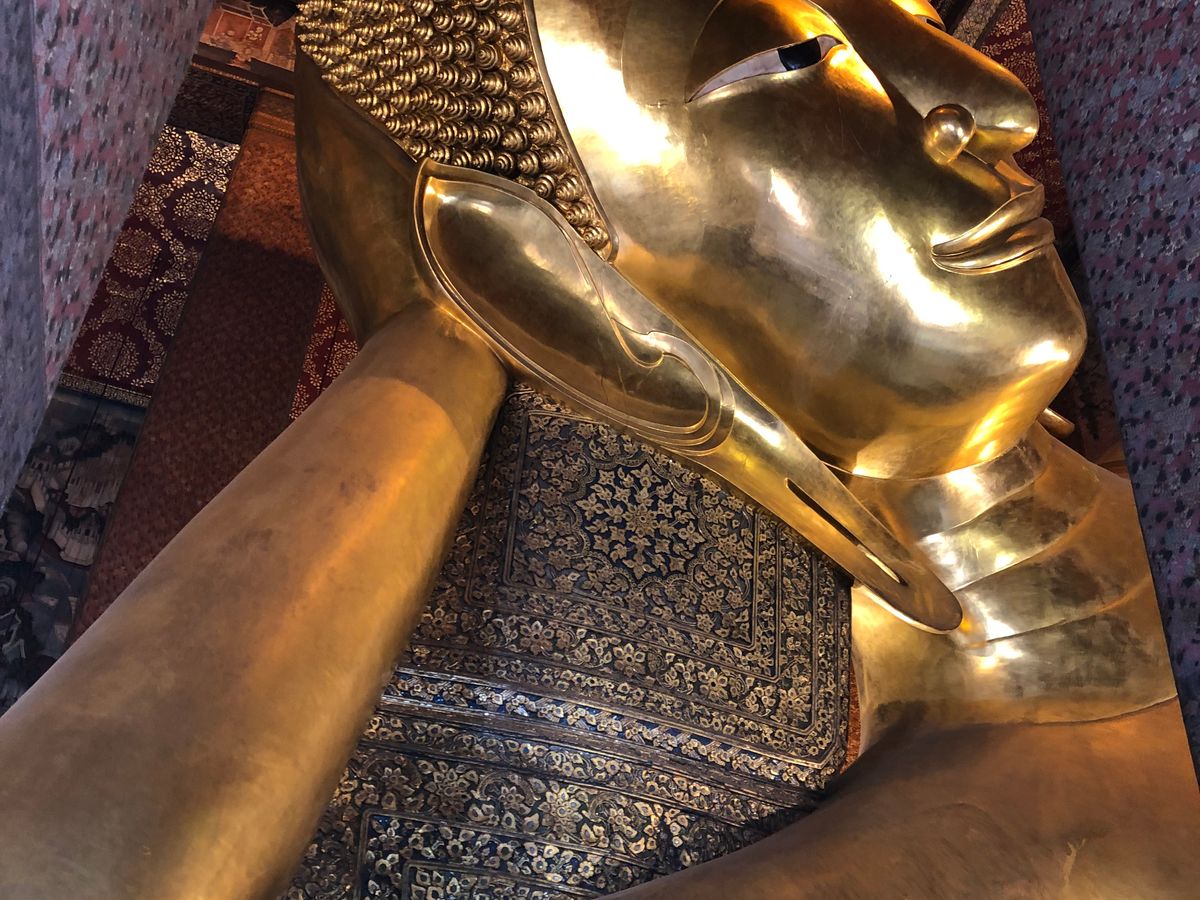 エメラルド仏は写真撮影禁止でしたが、小さな仏像が高い台座の上に鎮座していました。逆に涅槃仏はとてつもなく大きな仏像でこれまた驚く大きさでした。