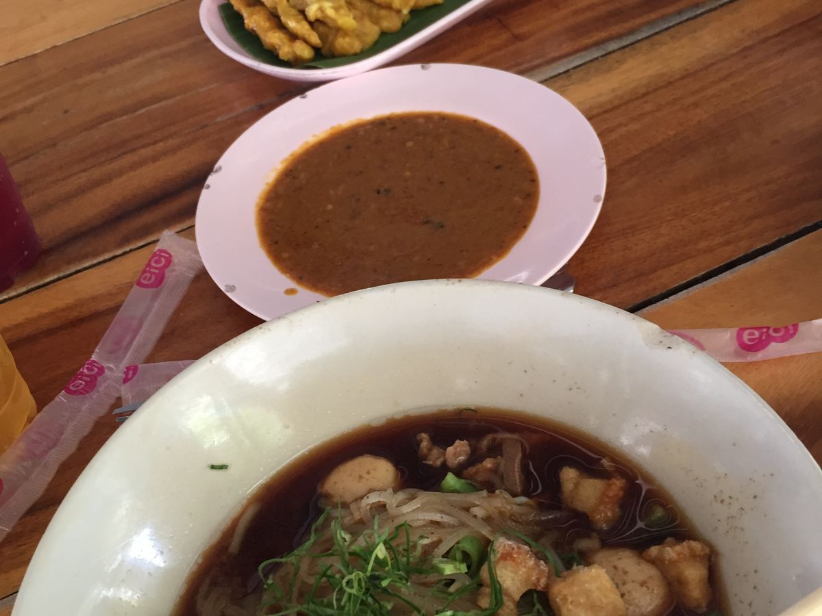 本ご予約でご案内しましたのはローカルタイラーメン店です。こちらはシャロン地区の人気店で、地元および観光客から高い評価を得ているお店です。