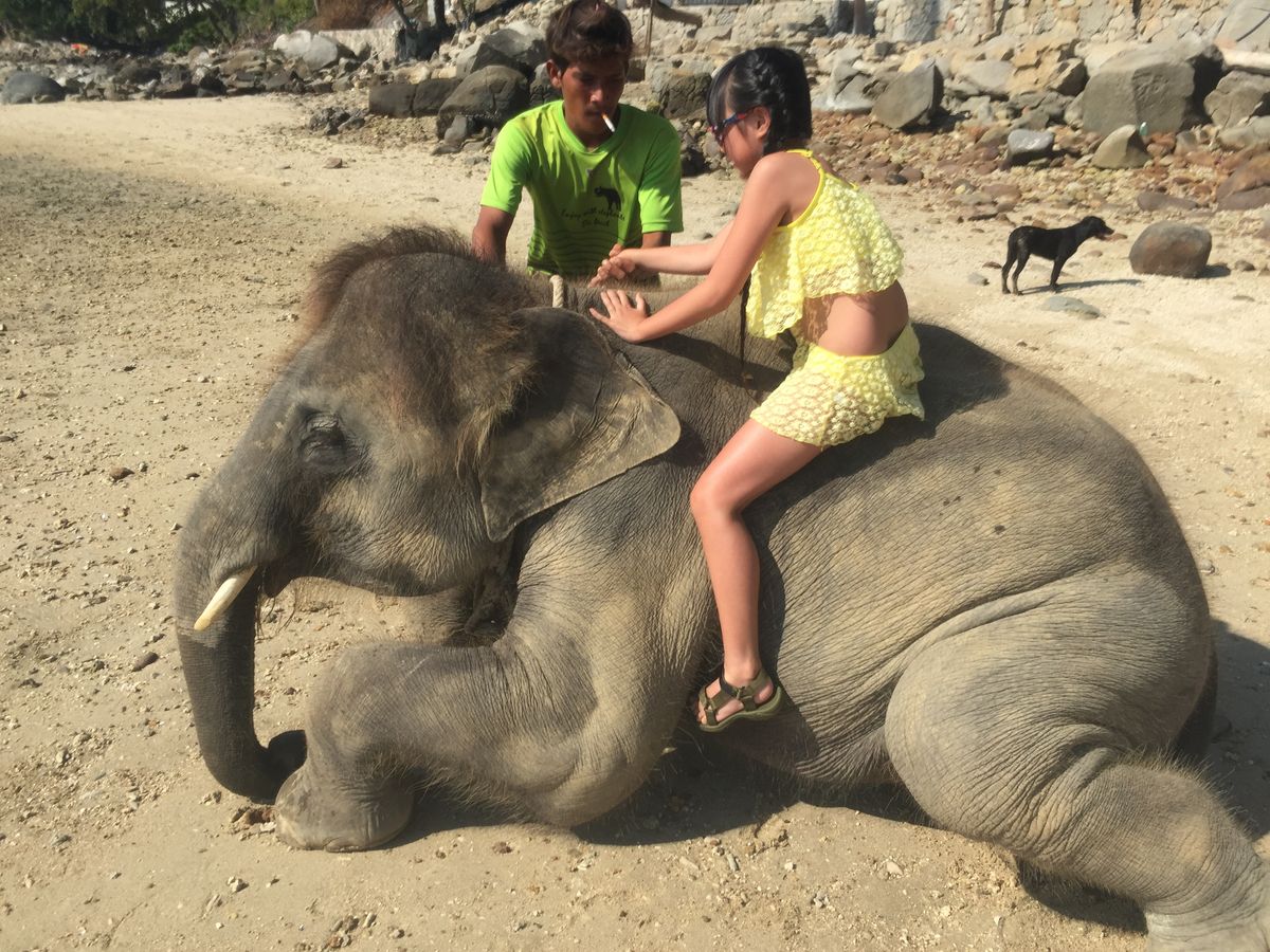 朝からゾウさんにのり