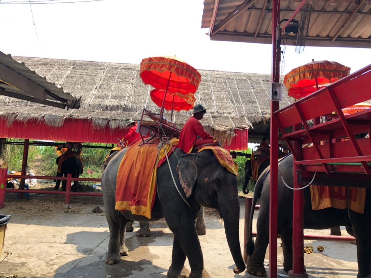 まだ日も上がらない6時にホテルをピックアップしてもらい、メークロン線路市場へ。他のツアーの客も多く、線路の市場を見るのも一苦労でしたが、ガイドさんがあらかじめフォトスポットを教えてくれていたので電車の通過する写真がきちんと取れました。その後、水上マーケットへこちらも他のツアー客で満杯でまるでアミューズメント施設のようで生活の場ではなくて観光客向けの施設でした。昼食にバンコクへ戻り、その後アユタヤに移動、象のりは10分ではなく7分なので園内の一部を歩くだけですが満足です、象へのおやつあげはひとかご50バーツですのでぜひ象にあげてください。アユタヤでは4か所を見学、バンコクよりも温度が高いのでじっくりと見てまわると日差しでやけどしそうになるのでそうそうとバスに戻りました。アユタヤからバンコクへ戻りホテル近くで降ろしてもらったのが18時頃なのでまるまる半日の過酷なツアーですが時間のない人にはぴったりのツアーです。
