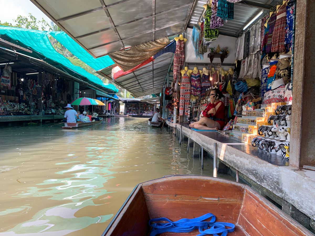 その後少し移動して、手漕ぎのボートに乗り換えしました。水上マーケットと呼ばれる市場はこちらの方にあって、さまざまなものが売られていました。ブランド物のバッグなどをスーパーコピーと認めて、売られていたのがとても面白かったです(笑)