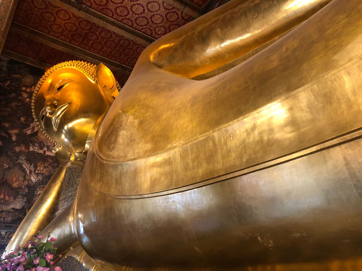 お参りセット(20バーツ程)をもらってお願いごとをした後仏像に金箔を貼るのがいい思い出になりました。