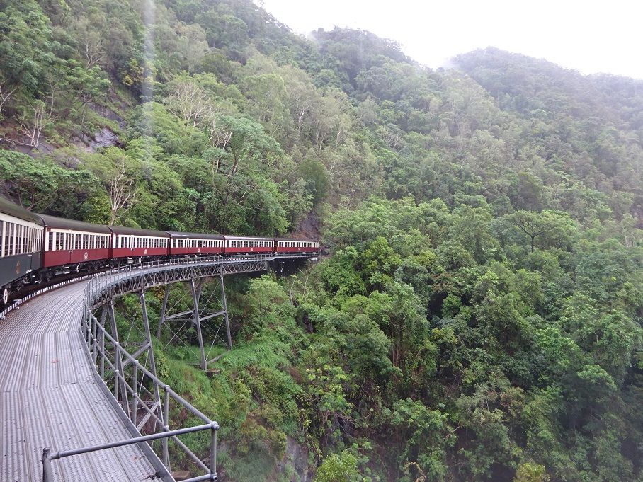 雨期に入り雨が降ったりやんだりの天気でしたが、スカイレール、キュランダ鉄道とも無事に動いて良かった。