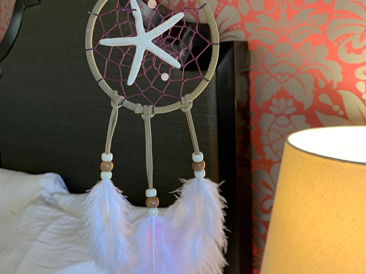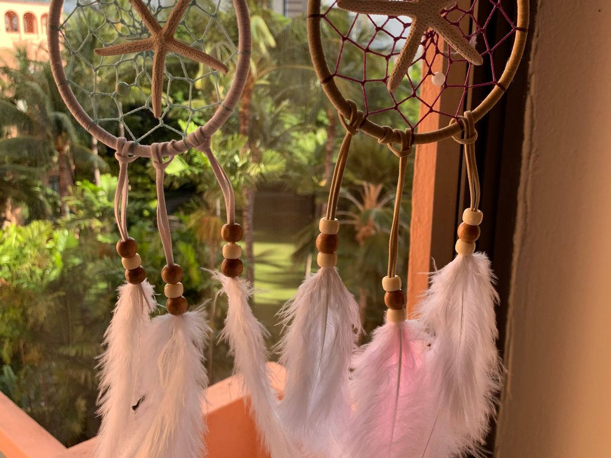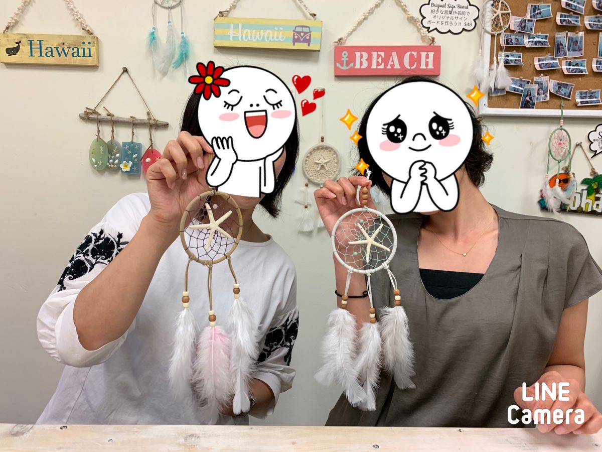せっかくハワイに行くので、何か想い出作りが出来ればいいなぁと、とっても可愛い紹介写真に魅かれて申し込みました!ドリームキャッチャーなんて自分で作れるのか不安でしたが、友達も私もおしゃべりしながらとっても楽しく作ることができましたー☆色やパーツなど、あーだこーだと悩みながらも、すごーく可愛いドリームキャッチャーが完成して本当に大満足です!最初は難しく感じた「編む」作業も、慣れてきたらスイスイ楽しくて♪もっとやりたかったくらいです(^^)パーツや色の選び方で、それぞれの個性が出せると思いますよ!誕生石のパワーストーンが選べたりもするので、本当に良い効果が期待できそうです!ホテルに帰ってからも2人で眺めて撮影大会(笑)!あー可愛い。。。日本に帰ってからもみんなに羨ましがられましたー!インスタ映えもバッチリです(^_-)お部屋のインテリアとしても最高で、何より見る度にハワイの楽しい想い出が蘇ってきます☆作り方を教えてくださったお姉様とも楽しくおしゃべりさせて頂いてありがとうございました!ドリームキャッチャー以外にも色んな手作り体験ができるみたいですので、また次回は違うものにも挑戦してみたいです!海もショッピングもいいですが、こちらも自信を持ってオススメしまーす★☆★