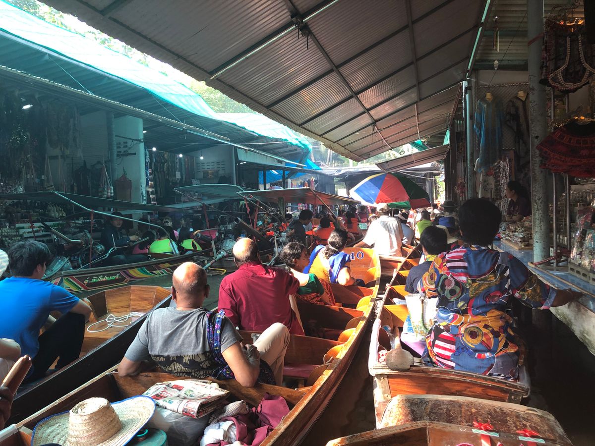 次に、手漕ぎボートに乗り換えた時、友人とは一番前と1番後ろバラバラにされてしまいました。体重や子連れの方のバランスを取るためだったのかなと思いますが、せっかく一緒に参加しているのに、結構残念でした。水上マーケットは、船が溢れかえっていて、カーブのところで渋滞がおき、衝突事故などもあり、少し危険でした。