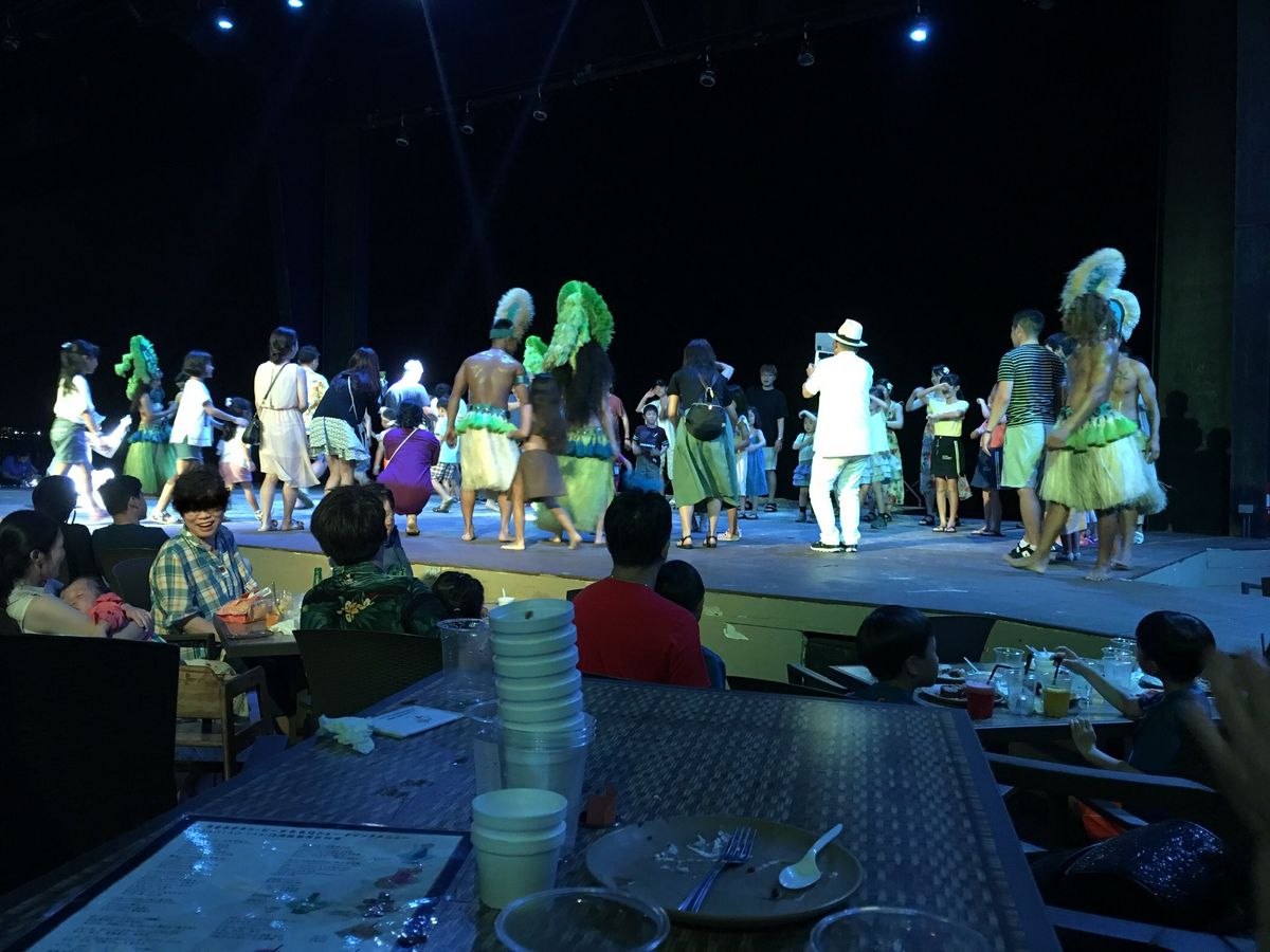 私たちは今回の年末年始のグアム旅行が10回目となる60手前の夫婦です。毎回、いろいろなオプショナルツアーに参加していますが、最近はこのフィッシュアイマリンパークのディナーショーにはまっています。マリンパークでは、サンセットクルージングやダンサーと直接触れ合えるタッチコース等、楽しめるディナーショーがいくつか有ります。しかし、何と言ってもビュッフェ形式のディナーがコストパフォーマンス的に大変に美味しい❗️ 大満足です。また、ショーのレベルが高いこと。歌もダンスも見事でついついビールの手が止まり、見いってしまいます。3ヶ月ごとに内容が変わるほどの力の入れよう、まさにプロフェッショナルって感じです。是非、みなさん参加してみてください。