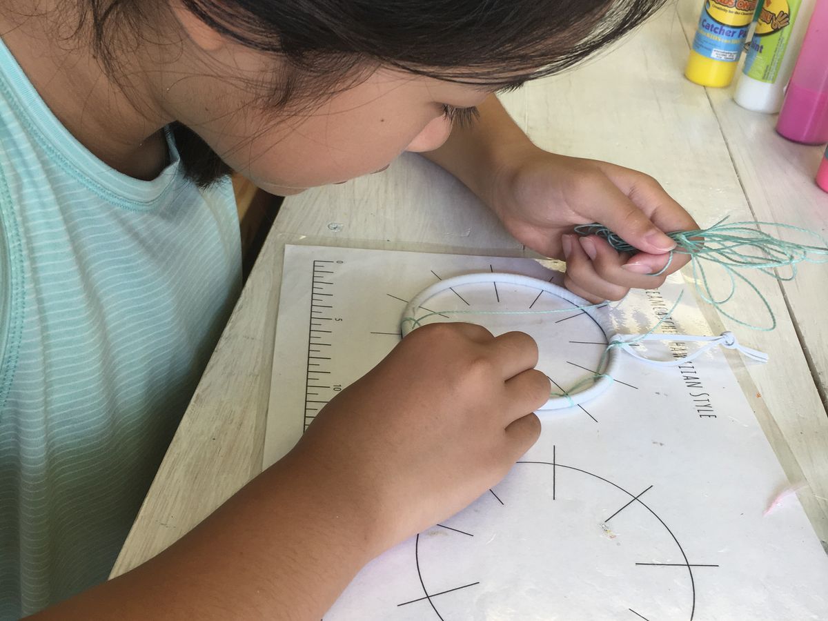 ドリームキャッチャーはパーツの色を何色かから選んで作っていくので、色のチョイスで出来上がりの雰囲気がだいぶ変わるなと思いました。