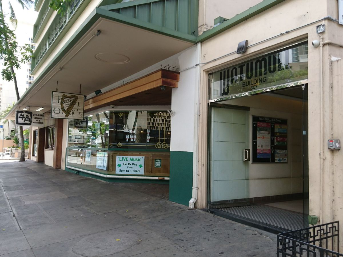 地図を頼りに逝くとカラカウア通りからロワーズ通りを北に上がるとすぐ、のはずなのに見当たらない。