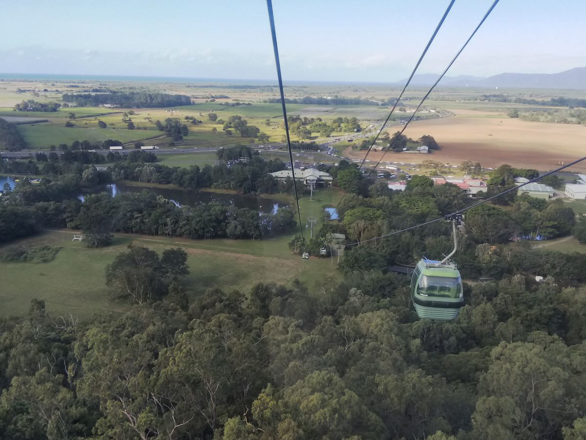 キュランダに行く時は列車でゆっくりと風を感じながら景色を堪能して、キュランダのこじんまりした町を散策。帰りはスカイレールで熱帯雨林の中を空中散歩