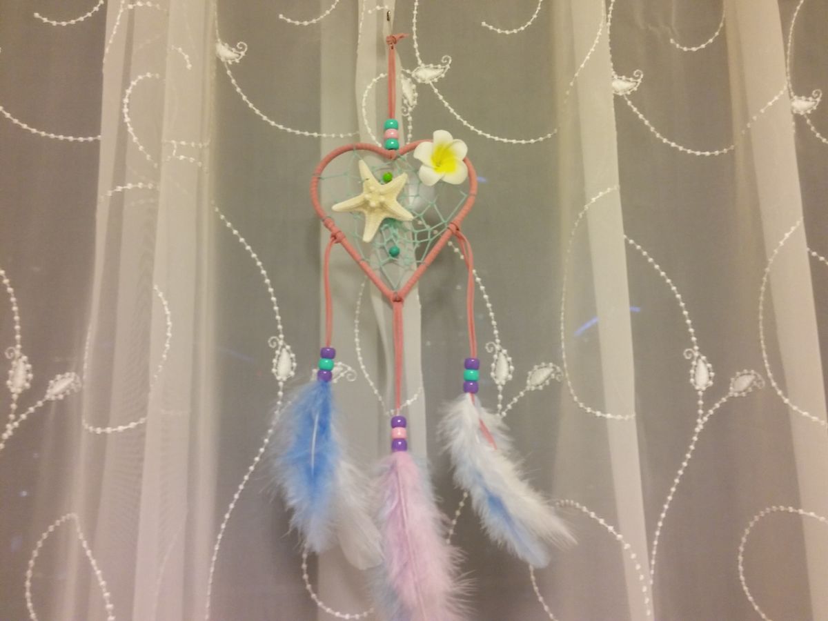 ハート形のドリームキャッチャーも丸形と作り方は同じです。