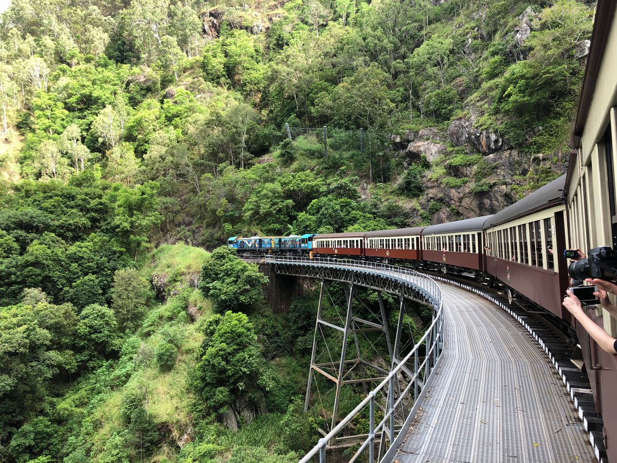 キュランダへはスカイレールと鉄道どちらも乗るべきだと思うので往復異なる交通手段なのが◎(ガイドさん曰く、どきどきツアーズ乗車の車両がキュランダ鉄道ベストポジションなんだとか..)