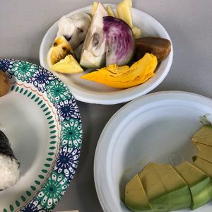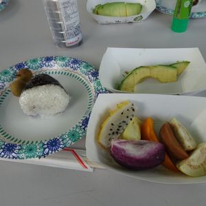そして、お待ちかねのハニークリームパイナップル!小ぶりでやや色白な身からは想像出来ないくらいの甘さが口に広がります。お皿いっぱいに盛って下さったので、心ゆくまで楽しめました。また、フルーツの盛り合わせとこんぶのおにぎり、アボカドわさび醤油も非常に美味しかったです!個人的には、アボカドが一番感激したかも。。約18種類ほど食べさせていただきお腹いっぱい大満足の旅でした。夏の時期は、マンゴーやライチがたらふく食べれるそうなので、今度は夏に遊びに行きたいです。注意点としては、蚊が非常に多いので、長ズボン必須と、汚れても良いスニーカーを履いていかれることをオススメします。