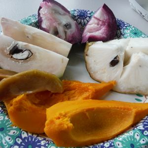 かぼちゃのような食感のエッグフルーツ、不思議な形のスターフルーツ、ライチのように透明な果肉のリュウガンなど、珍しい果物のオンパレード。
