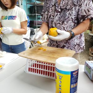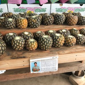 2度目のハワイでフランキーズ・ナーサリーを訪れました。連休前でなんと、私達夫婦のみのプライベートツアーとなりました。ガイドのゆみこさんの運転でダイヤモンドヘッドからカハラ地区をドライブしてハナウマ湾、マカプウ岬など絶景ポイントで写真を撮ってから果樹園へ。しとしと雨が降りだしましたが、レインコートをいただき園内を散策しながら、食べられる果実を試食。野鳥がついばんでいた黄色く熟れたバナナを発見し、ゆみこさんが高枝用の道具で採ってくれました。木で熟れたバナナを初めて食べ、美味しさにびっくりしました。雨も上がり、ランチタイムでは数々のフルーツ、おにぎりのおかずにアボカドのお刺身をいただきました。最後にハニークリームパイナップル登場です。初めて食べる美味しさにまたまたビックリ!名前の通り甘くクリーミィなお味でした。二人に2個分を切ってもらいましたが、食べきれず残りは持ち帰りました。翌日帰国予定でしたので買って帰ることはできなかったのが残念でした。帰りも絶景ポイントに寄ってもらって青空の下で写真を撮ってからホテルまで送ってもらいました。ゆみこさんのハワイ生活のお話の聞かせてもらい楽しく過ごせました。今度はマンゴーの季節に訪れたいと思います。ありがとうございました。