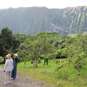 母と参加し、その日は私たちだけとなり、プライベートツアーのようになりました。車がないと行きづらいマカプウ半島にも立ち寄れ、各ポイントでいろいろ説明してもらい、写真もたくさん撮ってもらえました。農園では見たことのない木々や果実がたくさんあり、ガイドさんが木から摘んでくれ食べさせてくれました。ハワイの植物だけでなく、オーナーさんが取り寄せたという外国の植物も多くあり、初めて食べるものばかりでした。農園を散策しながら頬張った後は、軒先? にて試食本番。何種類食べたかわかりませんが、お腹一杯になるほどでした。念願のハニークリームパイナップルも食べられ大変満足でした。母も農園内を散策して、色々な木々や果実を見れて楽しかったとのこと。ガイドのユミコさんはとても気さくで、最近のハワイ事情や、さまぁ~ず大竹さんの話や、なぜハワイに来たかなど、色々お話をしてくれて、車中もとても楽しかったです。虫よけとポンチョも貸してくれました。(曇りだったので念のため)