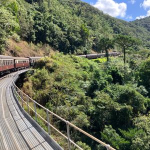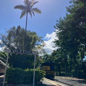 鉄道は、ゆっくりですが写真スポットが多くてとても楽しかったです。キュランダ村では、ハンバーガーやビールを食べて街を散策しました。動物園では、コアラと写真を撮り、アーミーダックにも乗りました。スカイレールは、天気が悪くて景色は微妙でした。