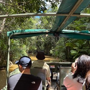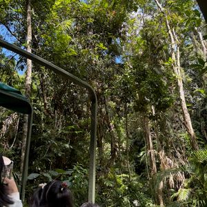 ホテル近くからバスでスカイレール乗り場まで行き、スカイレールで空から熱帯雨林を眺めました。途中2か所に止まり、散策している時は、熱帯雨林の中を歩いている感じがしました。キュランダ村に到着して、シャトルバスに乗り、アーミーダックへ。軍事用の水陸両用車で陸から、水上から熱帯雨林を体感しました。その後またキュランダ村に戻り、ブラブラ散策したのち、キュランダ鉄道に乗車。スカイレールからと鉄道からバロン滝を見ることができました。いろいろな乗り物に乗れたのも楽しかったです。