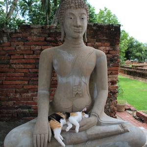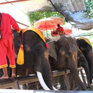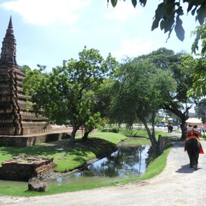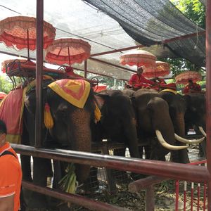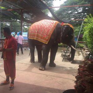 その後、ワットヤイチャイモンコン、ワットロカスタヤ、ワットマハタート、ワットプラシーサンペット(ガイドさんがその都度遺跡の説明をしてくれます)を観光し、楽しみにしていた象乗り体験です。思っていたより揺れもあり、椅子にしがみついていないと不安なほどでしたが、可愛い象さんの背中に揺られながら風景を眺められ、とても楽しい時間が過ごせました。
