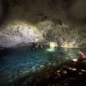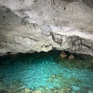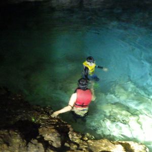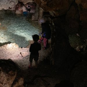 そこで洞窟内に行きます。洞窟内に透明度の高い水たまりというか池があり
