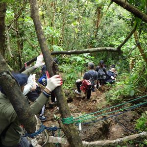 最初は穏やかな道なのですがだんだん高低差が広がりトレッキング、登山気分を味わえます。湿度がかなり高いので汗はいっぱい書くので途中途中の水分補給は重要です(氷で冷やしたペットボトルの水をいただけます)。