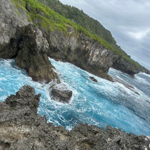 結構深い水場ですが泳げない人はライフジャケットを着用可能なのでその辺は安心です。その後さらに岩場を歩き、海岸にでます。一歩間違うと崖の下に落ちてしまう怖さがあるのですがエスコートしてくれるのでそこは安心でした。