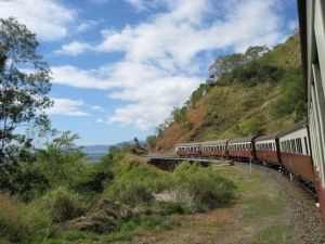 行きはケアンズから少し離れたフレッシュウォーター駅から1時間半ほどのんびりと列車に揺られますが、その間は、某・世界の車窓からのオープニングにも使われていたという、乗りながらにしてキュランダ列車の全貌が見える急なヘアピンカーブや、ストニークリークの滝、バロン渓谷、そしてすべてに高くて青い空…すべてがシャッターチャンスばかりで飽きることがありません!滝や川の流れに関しては乾季だったため迫力には欠けました。レインフォレステーションでは動物園を選択し、カンガルーやワラビーと触れ合い、また陸水両用のアーミーダックに乗ってジャングルクルーズのような熱帯雨林探検を味わい大満足。ランチの後はキュランダの村を散策して、手作りのアクセサリーやお土産を買ったりアイスを食べたりのんびりと過ごせます。そして最後にケアンズ方面の復路は世界最長ともいわれているというスカイレール(最大6人乗り)で熱帯雨林を上から楽しむ爽快な大空の散歩で絶景を楽しみながら一日の旅をじっくり思い返すことができました。とにかく最高です。天気がよければ5割増!小さい子供からお年寄りまで丸ごと楽しめるツアーです!ガイドさんもてきぱきしていてわかりやすく実にいい思い出ができました。