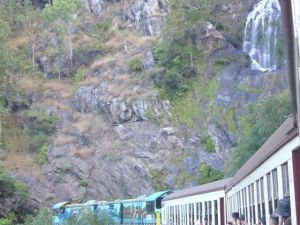 まずは テレビにも取り上げられているキュランダへのRAILWAY。ゆっくり登っていく窓には滝・渓谷・熱帯雨林・ファイト1発の岩場などを確認しながらガイドさんのがんばりのメッセージ。