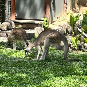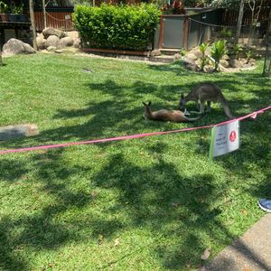 10時頃発のスカイレールでキュランダ村へ行き、こちらの入園予定は13時にしていましたが、少し時間を持て余しました。もう少し早めの時間で予定を立てても良いと思います。私達はコアラとの写真撮影は別の場所でする予定だったので、今回は入園券のみにしました。そんな私たちの目的はウォンバット!夜行性のため基本的に寝ていたのですが、何度か見にいくと寝床をかえるために動く姿を見ることができました。気温が31℃くらいあったのでワラビーや他の動物達も日陰にいたり、あまり活発な様子は見れませんでした。それでもゆったり過ごせて良い施設だと思います。