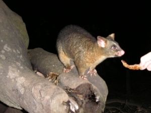 残念ながら、このツアーの目玉のカモノハシは今回見ることが出来ませんでした。カモノハシを観察できる時間は30分間と決まっているそうで、その間に姿を現さなかったらあきらめるしかないそうです。その代わり、キャンプサイトでの夕食時にはポッサッムが現れて、直接パンをあげることも出来たし、ワラビーやそのほかの動物達もいろいろ見ることが出来ました。そして最後には満天の星空。天の川に南十字星など、星が降るとはこのことかと思うほど本当に美しく感動しました。その上蛍も現れてとても幻想的でした。