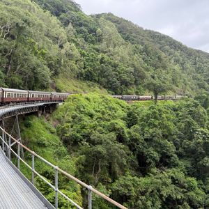ダイアモンドビューオプションで、床ガラス張りのスカイレールで下も横の景色を楽しめました。帰りのキュランダ鉄道は乗車時間が少し長いのがネックだけど、途中下車やカーブでの最後尾までの列車景色は最高でした!