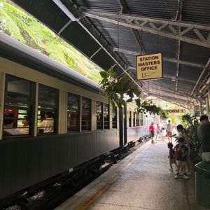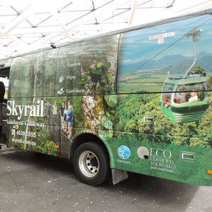 行きのスカイレールまでの送迎も時間通りに来ていただき、駅で券の引き換えをしたらすぐに乗車できました。長いロープウェイから原生林を見たり、野生のワラビーを見たり、日本では聞かない鳥の鳴き声を聞きながらキュランダへ。途中下車をして滝を間近に見える展望台へ。前日雨の為迫力ある滝でした。