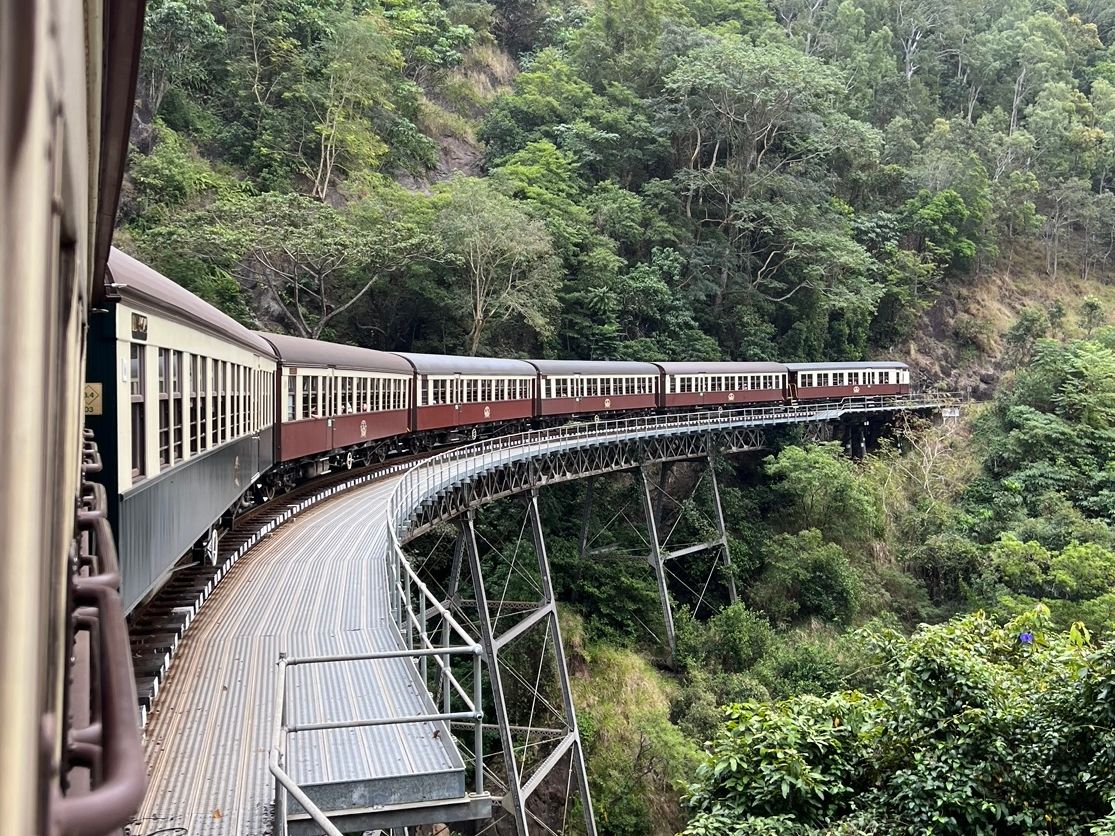 キュランダ鉄道はクラシックな車内でガイドブックなどでよく見かけるシーンもすぐに出てきます。アナウンスでキュランダ鉄道の歴史なども流れるので飽きません。