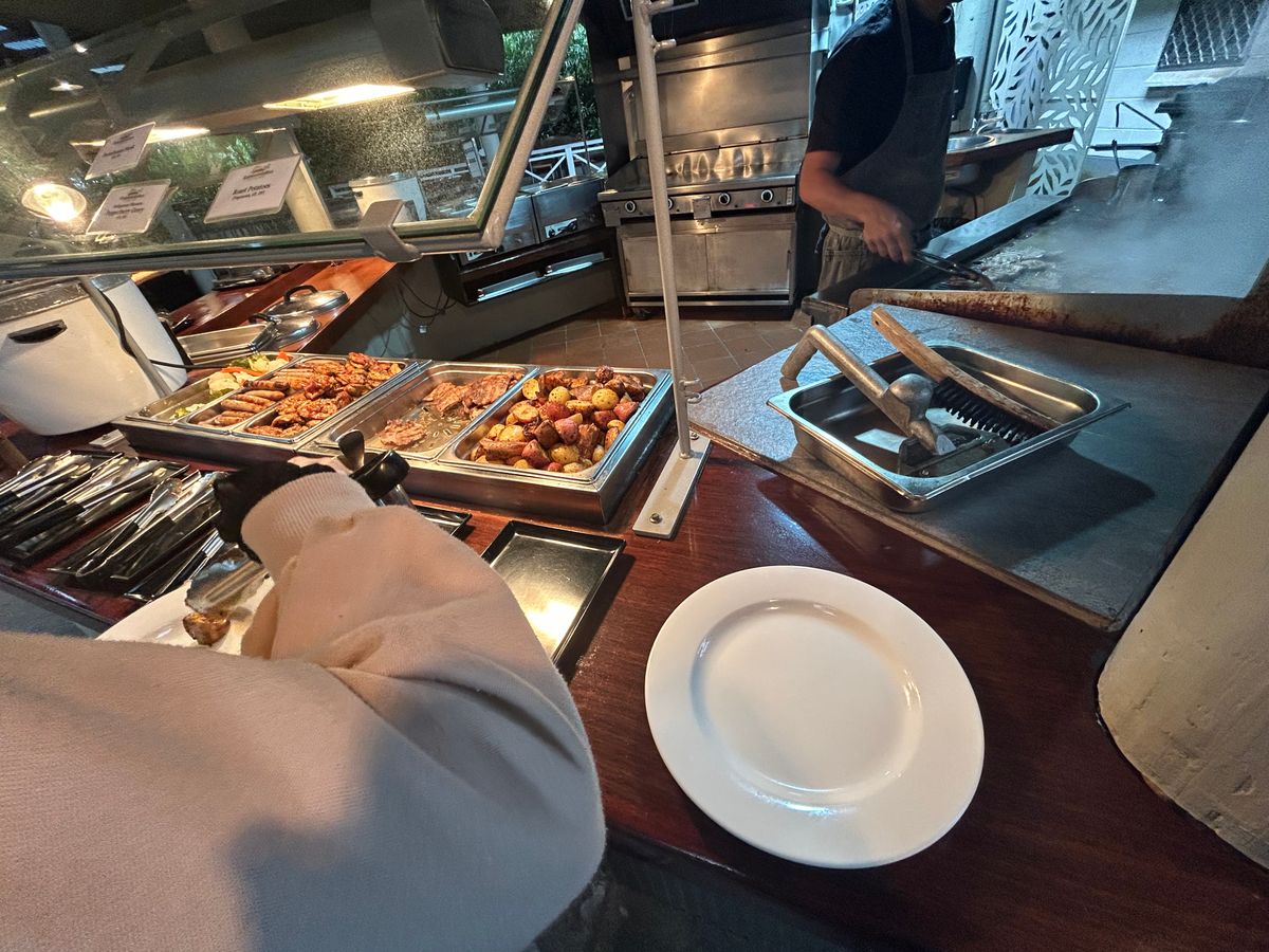 ・ランチはシェフが肉を焼いてくれるタイプのバイキング