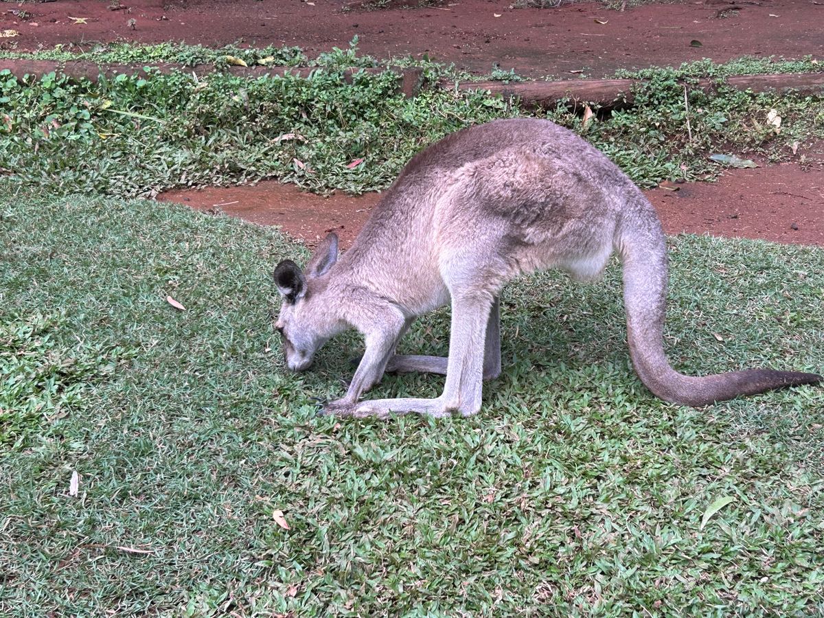 その後は、ワラビー、カモノハシ、ポッサム等、オーストラリアならではの動物にもたくさん出会えました!特にワラビーは、餌付けや撫でたりすることもでき、とってもかわいかったです!お腹に赤ちゃんがいる子もいて、かわいい写真がたくさん撮れました。カモノハシは、遠くから静かに見るといった感じでしたが、見つけられた時の感動は忘れられません!今まで見たことのあるどの動物とも違うフォルムであることが一目瞭然でした。カモノハシとは触れ合うことは出来ないけど、1目見ることすらこの先もうないと思うので、貴重な体験でした。ポッサムは、夕飯を食べている時に近くに来てくれました。ご飯のピーナッツを食べている姿がかわいすぎました。