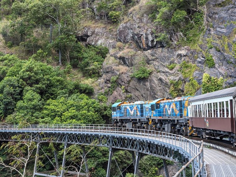 行きのスカイレールはQRコードをかざすだけで乗車。帰りの鉄道は座席番号がメールで送られてきて手続きなし。スムーズでした。スカイレールと鉄道両方体験したかったのでこのツアーにしました。帰りの鉄道は乗車時間が長いので、時間を有効に使うなら両方スカイレールの方がいいです。ケアンズの街中からスカイレールの駅まで、タクシーだと50ドルくらいです。
