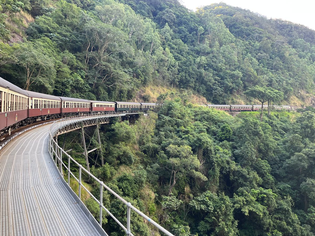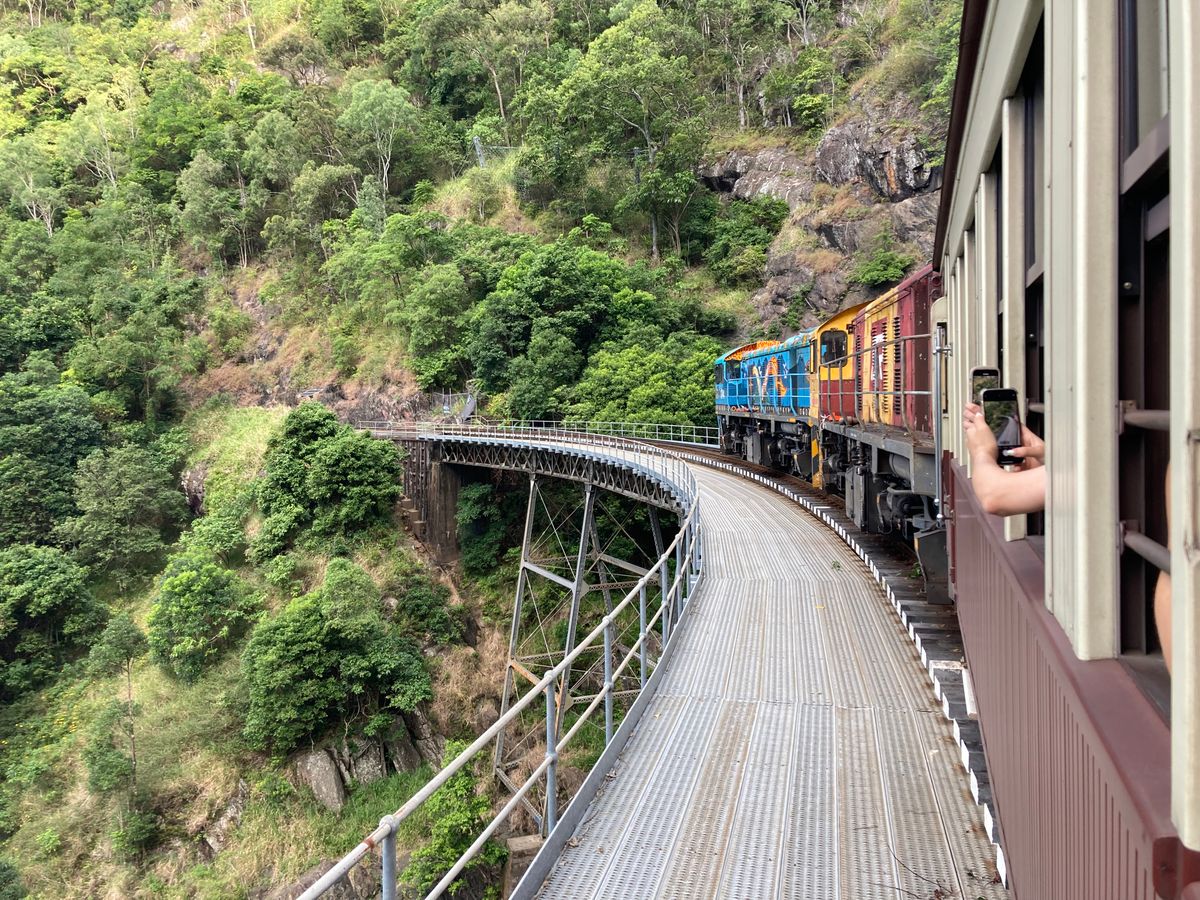 英語ができないのでいろいろ不安でしたが、スミスフィールド駅でのチェックインやケーブルの乗り降りなど、特に問題ありませんでした。キュランダ村は小さいので2、3時間ほどあれば全て回れると思います。コアラガーデンズは当日券で入場できましたし、コアラもすぐに抱っこできました。帰りの列車の席がイマイチで、映える写真はあまり撮れませんでした。